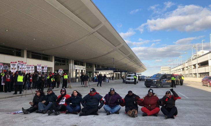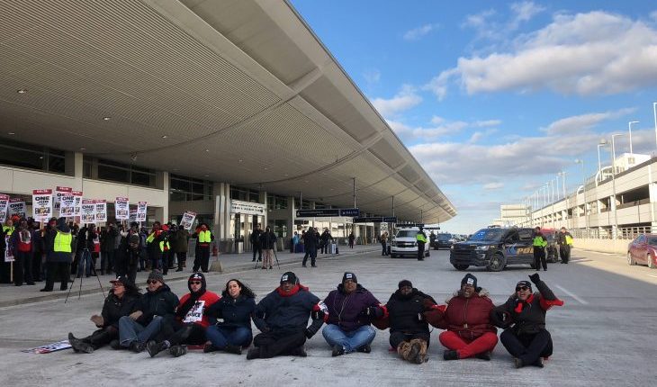 We won’t stop until we get #fairwages & #healthcare. These courageous people got arrested tonight at DTW b/c they believe workers deserve human dignity. Shame on you @Delta for leaving workers behind and letting them live in poverty. @unitehere https://twitter.com/heyadiana/status/1228446085821149184 …