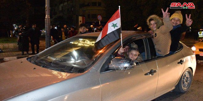 أهالي حلب يحتفلون بانتصارات الجيش وتحريره القرى والبلدات غرب المدينة وشمالها من الإرهاب (صور وفيديو)