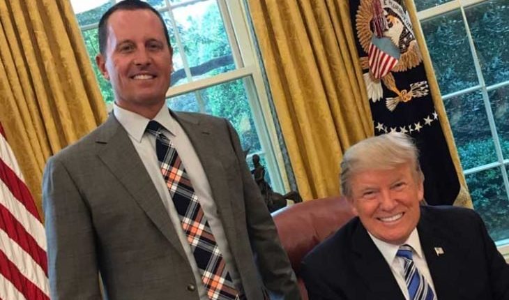 وقال ترامب في تغريدة عبر حسابه الرسمي بموقع التواصل الاجتماعي “تويتر”: “يسرني أن أعلن أن سفيرنا الذي يحظى باحترام كبير في ألمانيا، ريتشارد غرينيل، سيصبح قائما بأعمال مدير الاستخبارات الوطنية”.