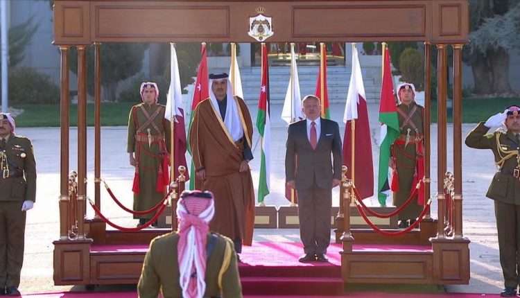 وهج 24 : استقبل جلالة الملك عبدالله الثاني، أخاه سمو الشيخ تميم بن حمد آل ثاني، أمير دولة قطر الشقيقة الذي وصل إلى عمان اليوم الأحد، في زيارة رسمية للمملكة.