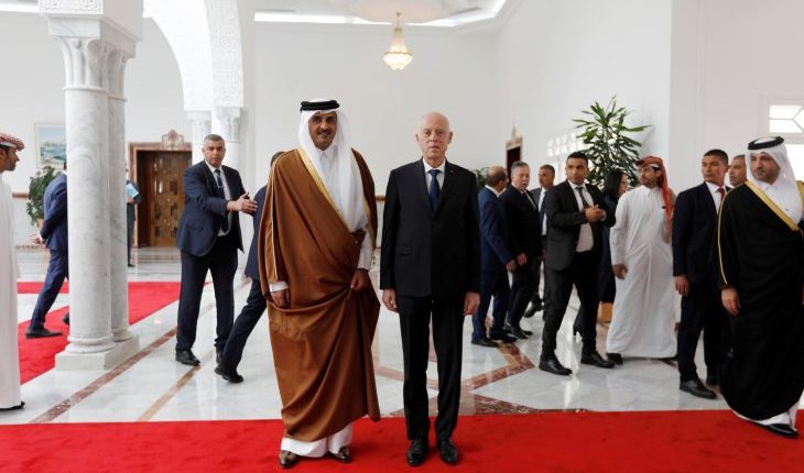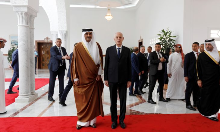 وكانت الرئاسة التونسية قالت، في بيان، إن الأمير تميم يترأس وفدا رفيعا يضم وزيري الخارجية محمد بن عبد الرحمن آل ثاني، والمالية علي شريف العمادي.