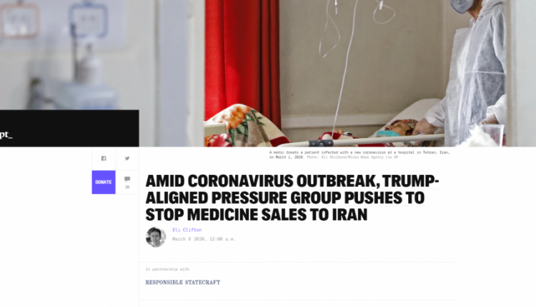 وتسعى احدى اللوبيات المتنفذة والمقربة من حكومة الرئيس الاميركي دونالد ترامب الى الضغط لمنع شركات الدواء من التعاون مع ايران وسط انتشار فيروس كورونا في جميع أنحاء العالم.