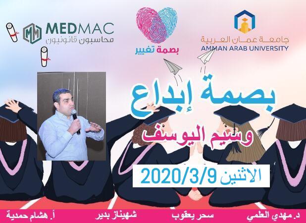 ملتقى بصمة تغيير الثقافي يتشرف بدعوتكم لحضور بصمة من بصمات التغيير ندوة حوارية بعنوان (بصمة إبداع) وضيفنا *السيد وسيم* *اليوسف* مدير تطوير المبيعات في شركة بيبسي ويدير الحوار * الدكتور مهدي العلمي* مدير تنمية الموارد البشرية في بنك الاردن سابقا
