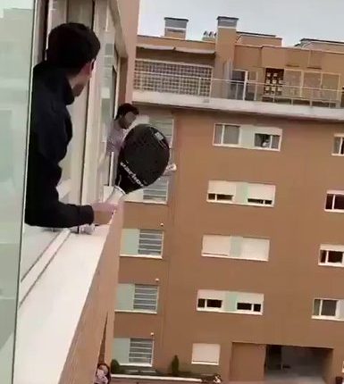 وهج 24 : أظهرت لقطات متداولة عبر مواقع التواصل رجلين إيطاليين يلعبان التنس عبر النافذة، في ظل الحجر الصحي المفروض عليهما بسبب فيروس كورونا.
