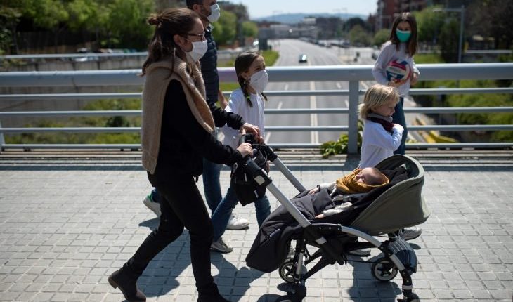 وأفادت العائلات الإسبانيّة من قواعد جديدة تُتيح للأطفال الخروج للمرّة الأولى منذ 14 آذار/مارس، وشوهد أطفال يلهون على درّاجات هوائية في شوارع مدريد وارتدى بعضهم أقنعة وقفازات.