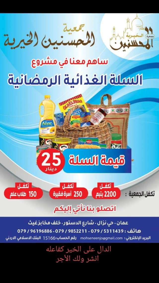 وهج 24 – محيي الدين غنيم : لا شك أن الحملات السابقة التى أطلقتها جمعية المحسنين الخيرية والتى أسهمت مساهمة فاعلة في التخفيف من معاناة الأيتام والفقراء والمحتاجين ومنذ بداية أزمة إنتشار فيروس كورونا فقد أطلقت الجمعية عدة مشاريع وحملات خيرية لمساعدة عمال المياومة والمحتاجين والمتعطلين عن العمل ومع بداية شهر رمضان المبارك أطلقت الجمعية #مشروع _ الراحمون لمساعدة الأسر المحتاجة والذي يتضمن أيضا مشروع إفطار صائم ومشروع ربطة خبز ومشروع الطرد الرمضاني الغذائي .