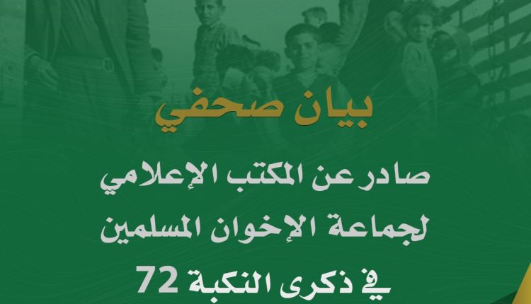 بيان صادر عن المكتب الإعلامي لجماعة الإخوان المسلمين في ذكرى النكبة الـ 72