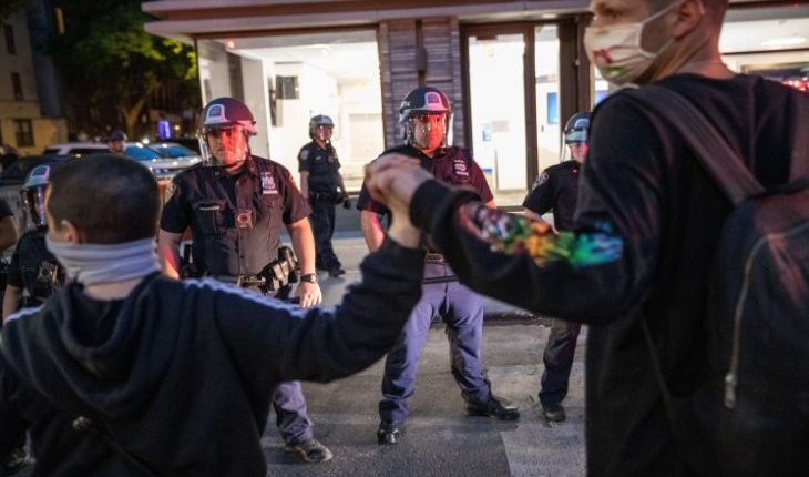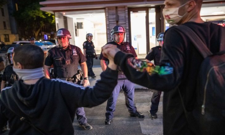 ومنذ الثلاثاء الماضي، تشهد جميع الولايات المتحدة الأمريكية احتجاجات على مقتل فلويد الأمريكي من أصل إفريقي على يد شرطي، تحولت لاحقا إلى أحداث عنف بين المحتجين والشرطة.