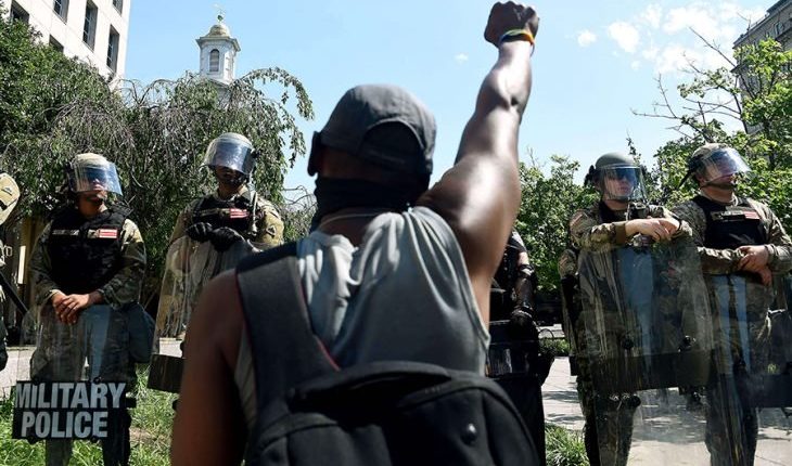 وأثار الكاتب مفارقة في رد الرئيس ترامب على وباء فيروس كورونا الذي أدى إلى مقتل أكثر من 100.000 أمريكي والتي كانت كسولة وغير فاعلة ورده على المتظاهرين المعادين للعنصرية حيث كان رده الأول هو استدعاء القوات العسكرية. وأضاف أن الولايات المتحدة ارتكبت على مدى عقدين من الزمان أخطاء في لجوئها للقوة العسكرية كي تحل المشاكل المستعصية، خاصة في العراق وأفغانستان التي استبعدت فيها الطرق الدبلوماسية. ولكن ترامب يريد تكرار الخطأ نفسه ولكن داخل أمريكا. وبحسب استطلاع لمؤسسة “غالوب” فالجيش الأمريكي هو أهم مؤسسة تحظى بالثقة داخل البلاد إلا أن دعوة ترامب الجيش لكي يقوم بقمع المحتجين السلميين لكي يبدو شخصا حازما، يخرق التقاليد التي تجعل الجيش فوق الولاءات الحزبية، ويجب أن تقرع محاولته هذه أجراس الإنذار.