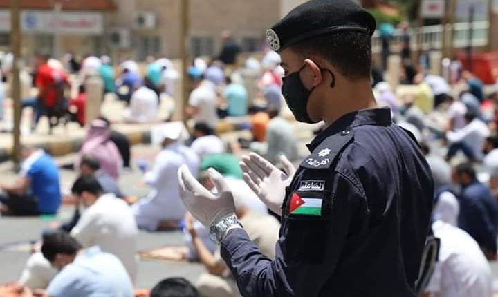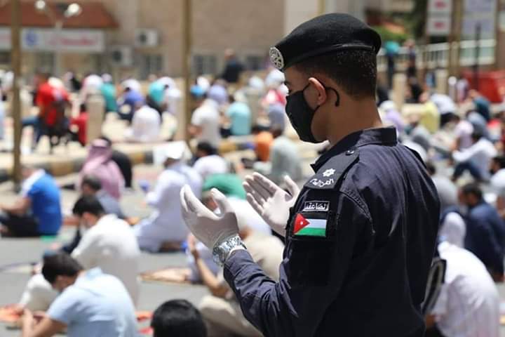 ونفذت مديرية الأمن العام خطة أمنية مجتمعية في المساجد، نفذها أكثر من 32 ألف رجل أمن قاموا بتعقيم وتطهير المساجد قبل موعد الصلاة، وعملوا على توزيع أدوات السلامة العامة، وتجنب التجمع والازدحام، وتحديد أماكن أداء الصلاة للمصلين بما يحقق التباعد الجسدي.
