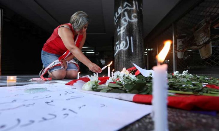 محتجون لبنانيون يتجمعون حدادا على شخصا انتحر في شارع مزدحم ببيروت