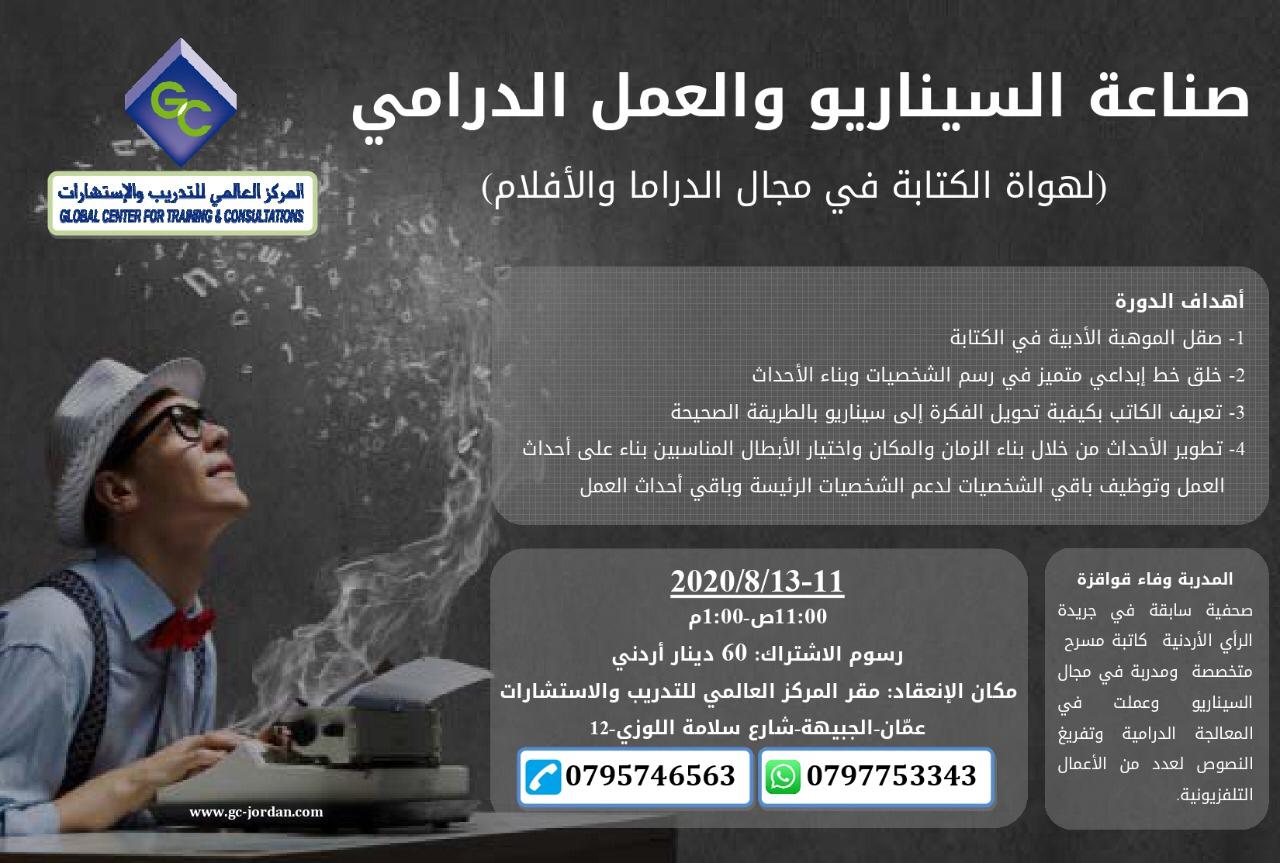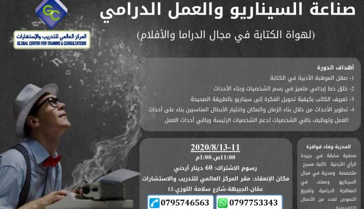 المركز العالمي للتدريب والإستشارات يعلن عن دورة تدريبية ولأول مرة بعنوان : (صناعة السيناريو والعمل الدرامي )