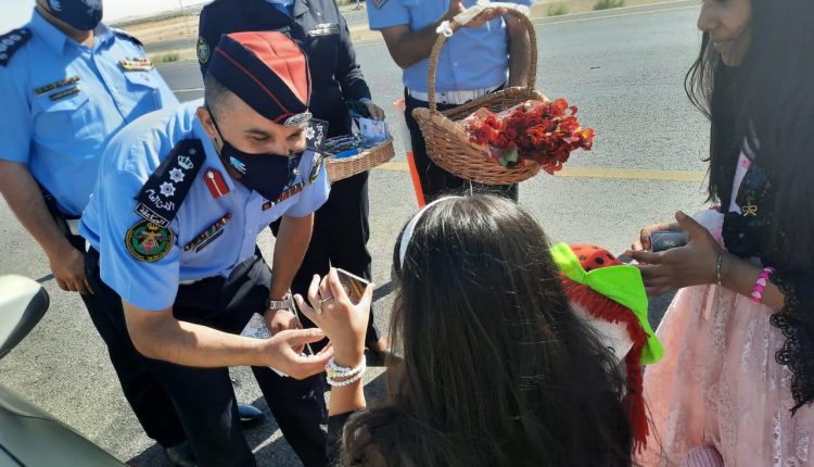 وهج 24 : شاركت مديرية الأمن العام الإخوة المواطنين فرحة عيد الأضحى المبارك في مختلف محافظات المملكة حيث قدمت لهم الحلوى وبطاقات المعايدة والورود في الأماكن العامة وبالقرب من المساجد التي أدّوا فيها الصلاة.