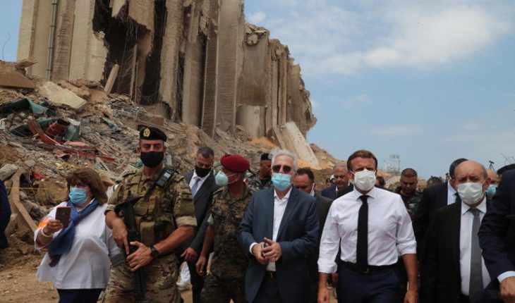 وتفقد ماكرون والرئيس اللبناني ميشيل عون، خلال زيارة الخميس، منطقة مرفأ بيروت التي ضربها الانفجار، والتقى على هامش الزيارة إلى جانب عون، رئيس الوزراء حسن دياب، ورئيس البرلمان نبيه بري.