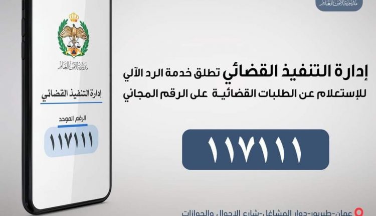ادارة التنفيذ القضائي تدعو الى اعتماد الرقم (117111)للرد الآلي للتواصل والاستفسار عن الطلبات القضائية