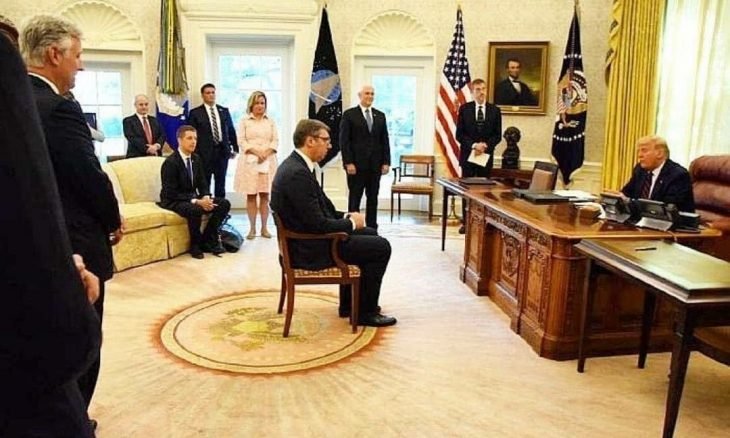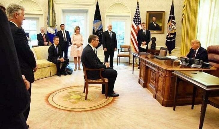 ومما زاد من موجة السخرية ضد الرئيس الصربي، انتشار صوره له وهو يجلس مثل التلميذ أمام ترامب في البيت الأبيض.