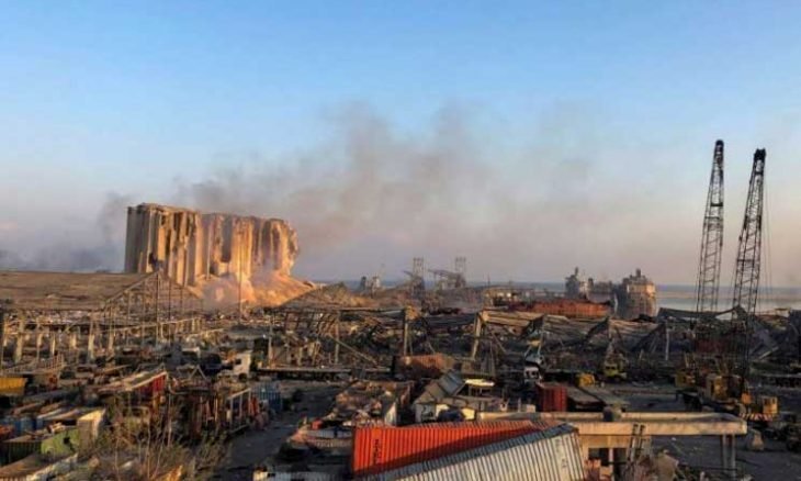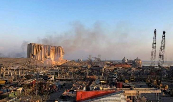 ودُمرت المستودعات وصوامع الحبوب الخرسانية بالمرفأ جراء الانفجار.