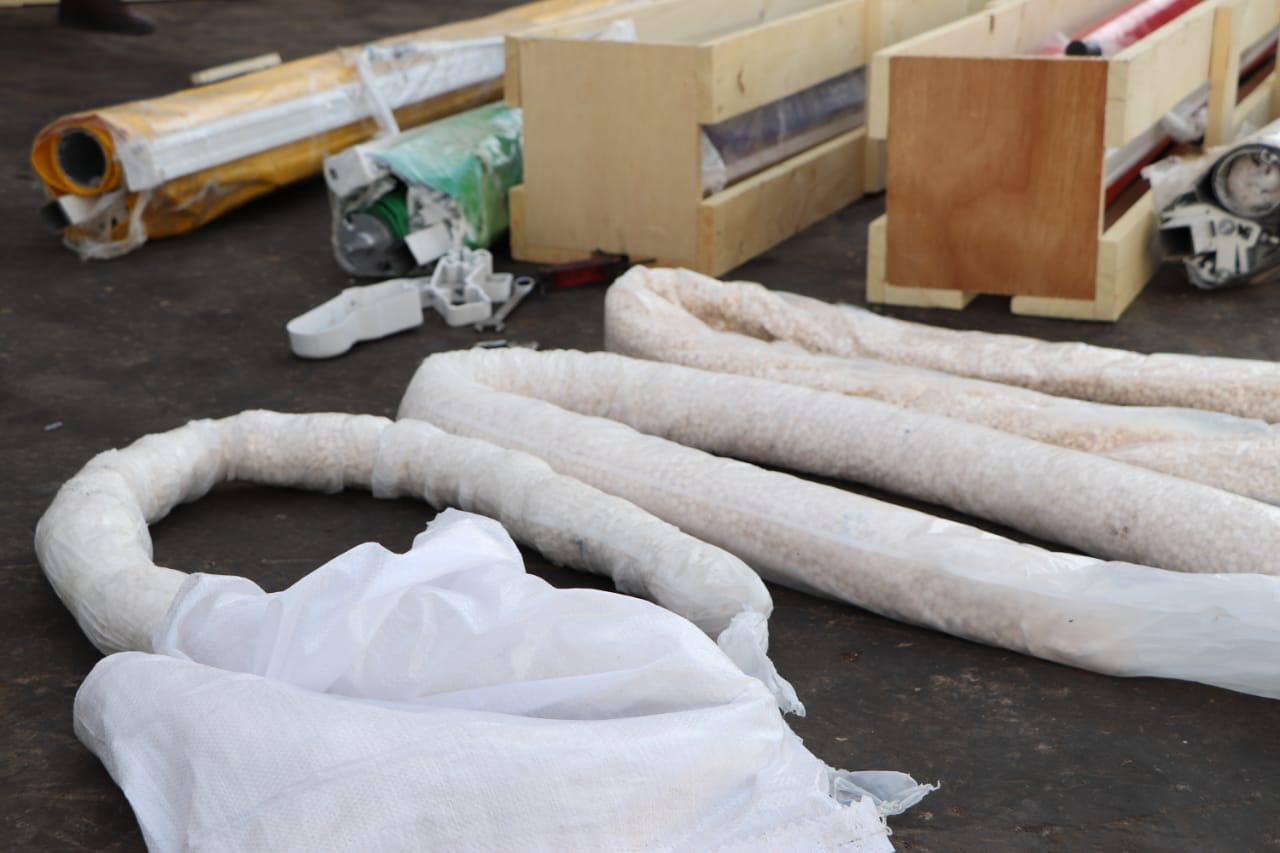 وتابع الناطق الاعلامي انه وبتفتيش المظلات عُثر بداخل الجسور الحديدية للمظلات على 150 الف حبة مخدرة أُخفيت بطريقة سرية وما زال التحقيق جارياً في القضية.