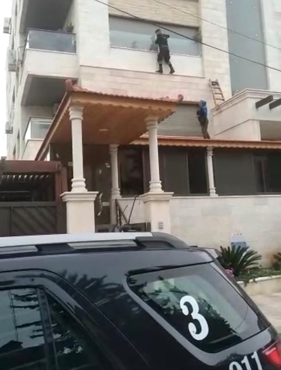 احدى دوريات النجدة تنقذ سيدة مسنة علقت في شرفة منزلها