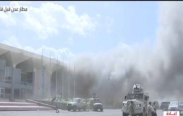 انفجار قوي وإطلاق نار في مطار عدن بالتزامن مع وصول الحكومة اليمنية الجديدة إليه