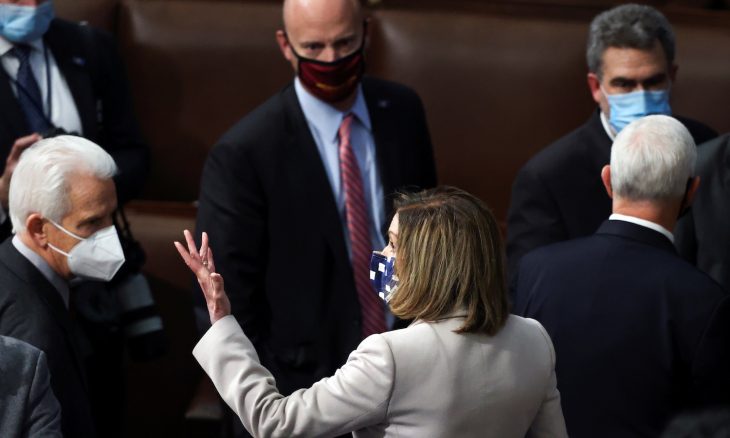 ودعت رئيسة مجلس النواب الأمريكي نانسي بيلوسي، اليوم الخميس، إلى عزل ترامب من منصبه فورا بموجب التعديل 25 بالدستور. وقالت للصحافيين في مبنى الكونغرس “أمس، حرض رئيس الولايات المتحدة على تمرد مسلح ضد أمريكا”.