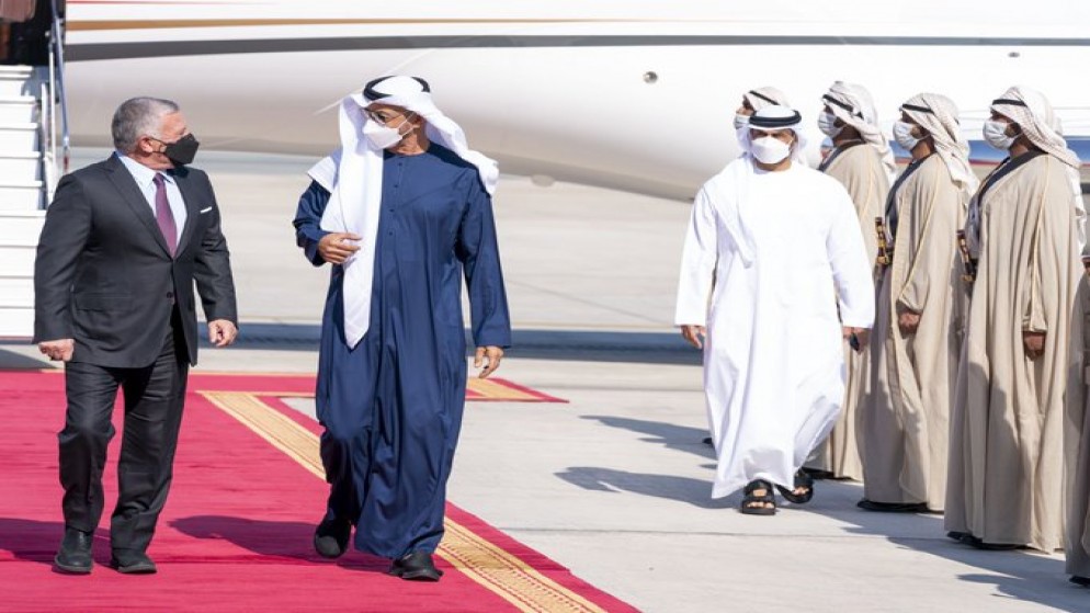 ووصل جلالة الملك عبدالله الثاني، السبت إلى أبوظبي، حيث كان في مقدمة مستقبلي جلالته لدى وصوله سمو الشيخ محمد بن زايد آل نهيان، ولي عهد أبوظبي، نائب القائد الأعلى للقوات المسلحة في دولة الإمارات العربية المتحدة.
