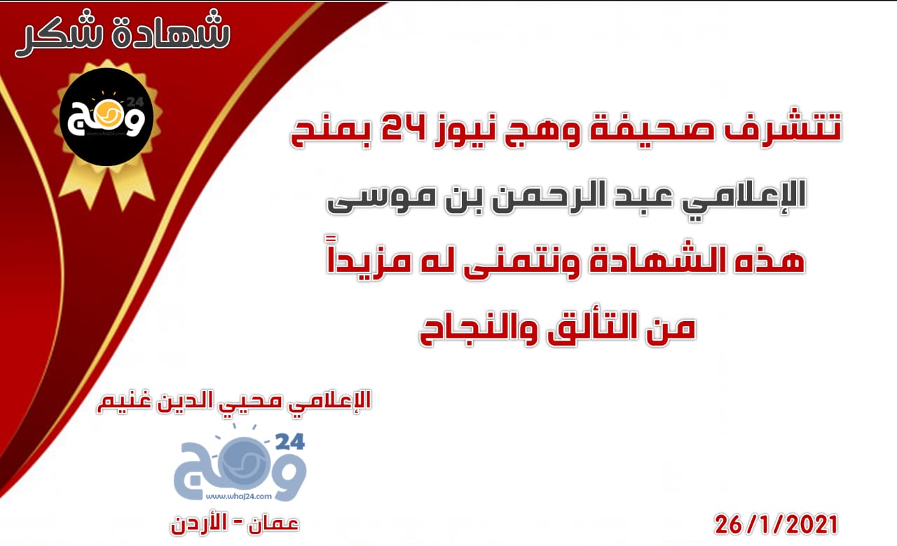 وهج نيوز _ تقرير دعاء وعل : قامت صحيفة وهج نيوز 24 بمنح شهادة شكر للاعلامي عبد الرحمن بن موسى، تقديراً لجهوده المبذولة في عالم الاعلام .