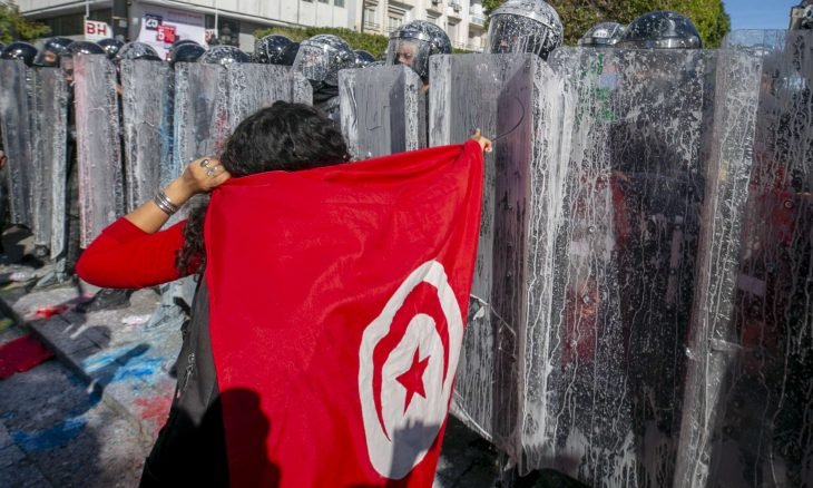 ويحمل البعض لافتات كتب عليها “لا عدالة، لا سلام = أوقفوا تمويل الشرطة”، وهي مستوحاة من احتجاجات “حياة السود مهمة” الصيف الماضي في الولايات المتحدة. وغالبا ما يواجهون كتائب من رجال الشرطة يرتدون معدات مكافحة الشغب، وتندلع مشاجرات بين الحين والآخر. وفي مظاهرة في وسط تونس العاصمة يوم السبت، رش المتظاهرون الشباب شرطة مكافحة الشغب بالطلاء.