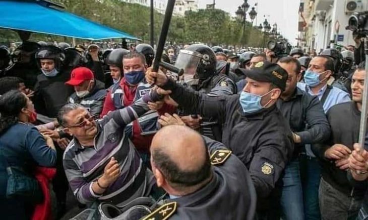 وكتب لطفي العرفاوي “الأستاذ المحامي عبد الناصر العويني الذي صرخ ذات ليلة من جانفي (كانون الثاني) 2011 (يا توانسة يا للي ظلموكم. يا توانسة يا للي قهروكم: بن علي هرب) موجها كلامه اليوم لقوات الأمن. هل يعيد التاريخ نفسه؟”.