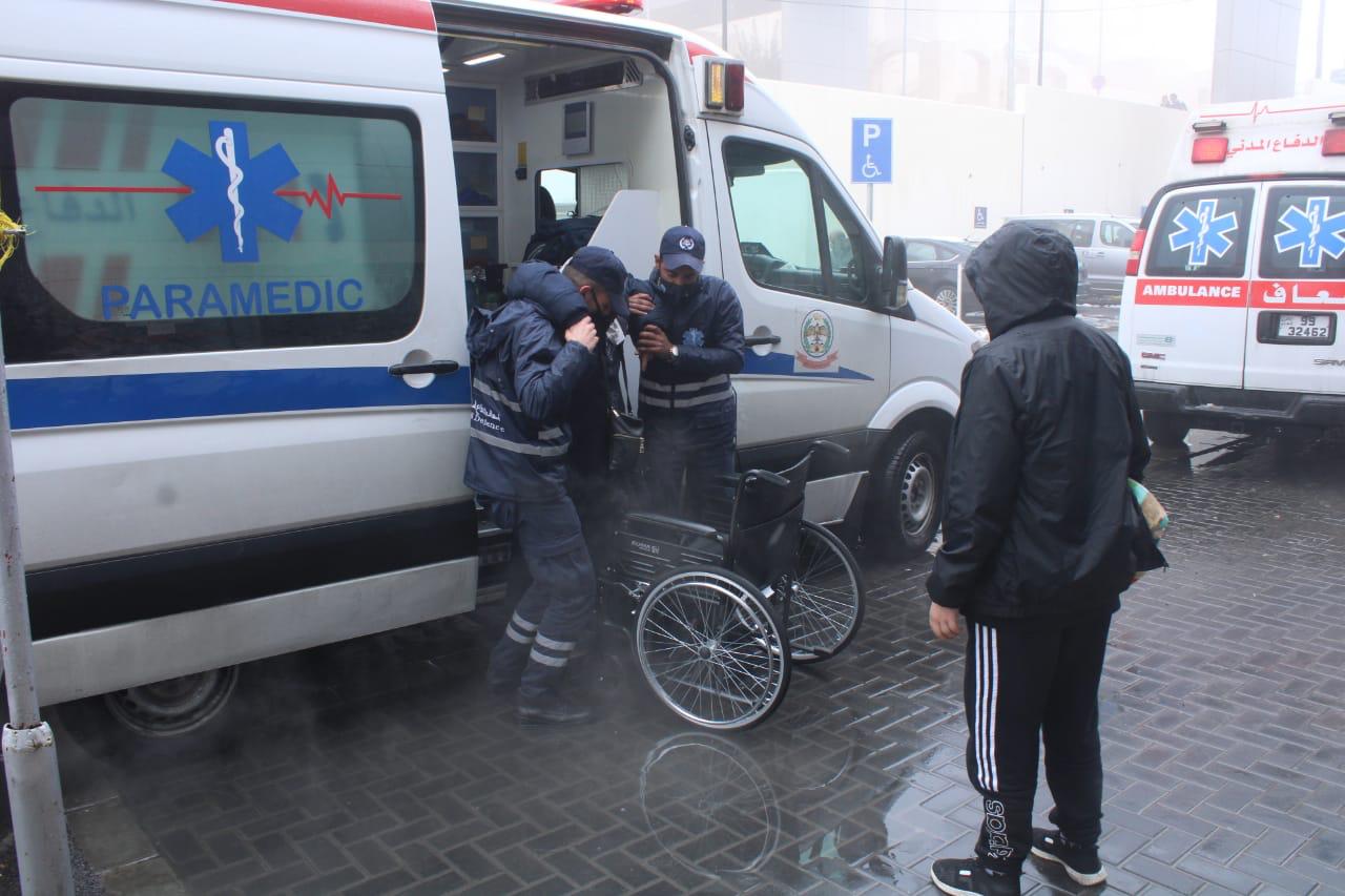 ** الدفاع المدني يتعامل مع 2533 حالة اسعاف ، منها 107 حالة ولادة و283 حالة لغسيل الكلى و 95 حالة للاشتباه بالاصابة بفيروس كورونا و 9 حالات اختناق بسبب وسائل التدفئة وحالتهم متوسطة و2039 حالة مرضية منذ بداية المنخفض الجوي .