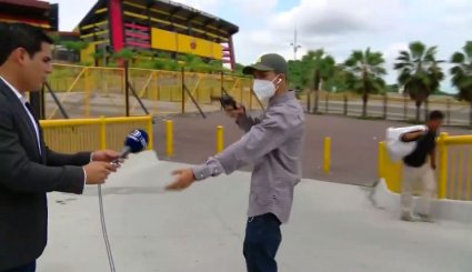 وهج نيوز : تعرض مراسل تلفزيوني في الإكوادور للحظة مرعبة، بعدما هدده لص بالسلاح لسرقة هاتفه، بينما كان في بث مباشر أمام الكاميرا.
