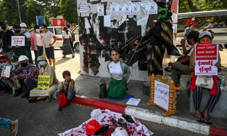 رغم ذلك نزل آلاف المحتجّين بينهم ممثلون عن أقليات اتنية بالزي التقليدي، من جديد السبت إلى شوارع رانغون عاصمة البلاد الاقتصادية، مطالبين بإعادة الحكومة المدنية والإفراج عن المعتقلين وإبطال الدستور الذي يُعتبر مؤاتياً جداً.