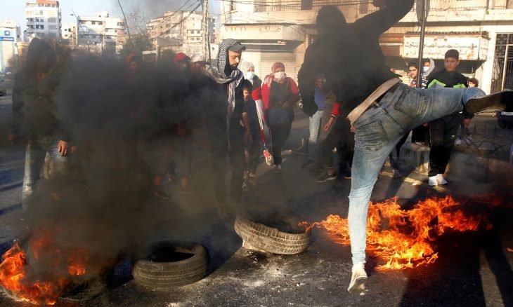 وأقدم عدد من المحتجين على قطع الطريق الدولية التي تربط بين مدينة طرابلس والمنية وعكا شمال لبنان احتجاجاً على تردي الأوضاع المعيشية وانهيار سعر صرف الليرة اللبنانية.