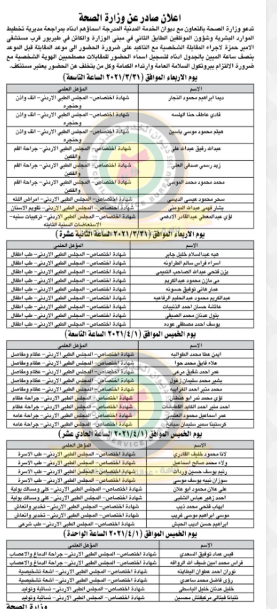 مدعوون للمقابلات الشخصية للتعيين في وزارة الصحة – أسماء