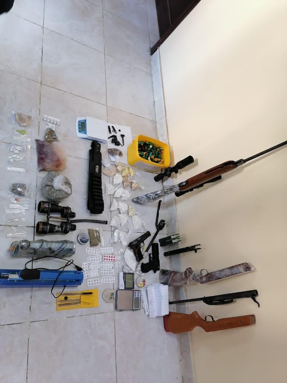 وأُلقي القبض خلال المداهمات الامنية على 11 شخصاً من بينهم اربعة اشخاص مطلوبين مصنفين بالخطرين والمسلحين وبتفتيش اماكن وجودهم ضُبط في احد المواقع مستودع يُستخدم لتخزين وتغليف المواد المخدرة اضافة الى ضبط حوالي 5 الاف حبة مخدرة و(115) غراماً من مادة الكريستال المخدرة و (15) غراماً من مادة الهيروين المخدرة ونصف كيلو من مادة الجوكر المخدرة وكمية من مادة الحشيش المخدرة اضافة الى مسدسين وبندقيتيّ صيد وكمية من الذخيرة .