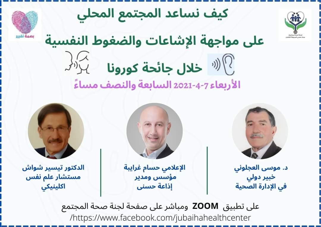 في ندوة توعوية لمواجهة الاشاعات والضغوطات النفسية التي ينظمها لجنة صحة مجتمع الجبيهة الشامل