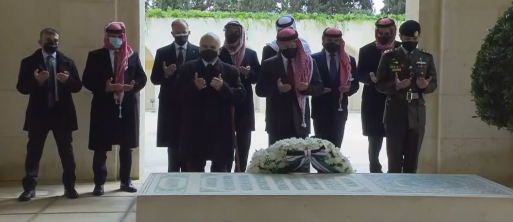 وزار جلالة الملك، يرافقه ولي العهد والأمير حسن بن طلال والأمير فيصل بن الحسين والأمير علي بن الحسين والأمير حمزة بن الحسين والأمير هاشم بن الحسين والأمير راشد بن الحسن والأمير رعد بن زيد والأمير غازي بن محمد والأمير طلال بن محمد، الأضرحة الملكية بمناسبة مئوية الدولة.