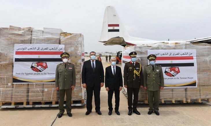 وكانت الرئاسة التونسية أعلنت وصول طائرة عسكرية مصرية محمّلة بمعدات ومستلزمات طبية للمساعدة على دعم جهود مكافحة وباء كورونا.