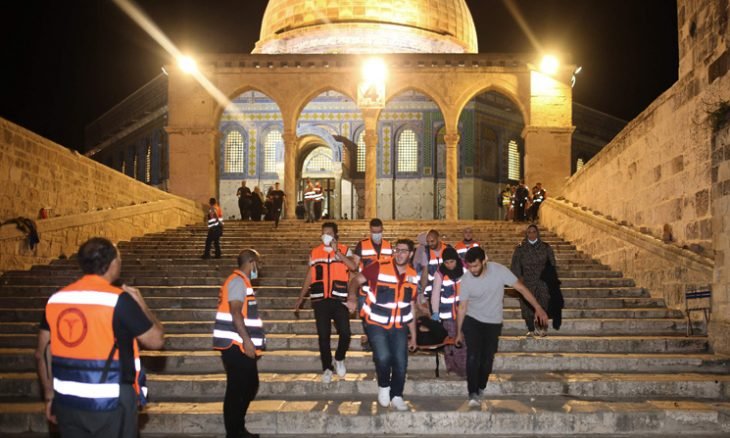 وأكدت جمعية الهلال الأحمر الفلسطيني في بيان، أن الشرطة الإسرائيلية لم تسمح للفرق الطبية بإسعاف الجرحى الذين أصيبوا داخل المسجد الأقصى.
