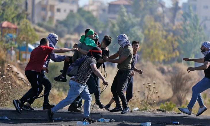 وأظهرت لقطات مصورة أحد الجنود وهو يحمل جنديا آخر من مكان إطلاق النار وكان مصابا فيما يبدو. وشهدت الضفة الغربية اليوم إضرابا شاملا بدعوة من حركة فتح، وخرجت مسيرات في معظم أنحاء الضفة الغربية كان أكبرها في مدينة رام الله وشارك فيها الآلاف.