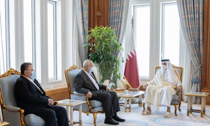جاء ذلك خلال استقبال أمير قطر لهنية والوفد المرافق له في الديوان الأميري في العاصمة الدوحة، بحسب بيان للديوان الأميري.