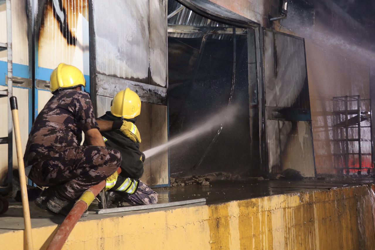 الدفاع المدني يخمد حريق مستودع في الزميله