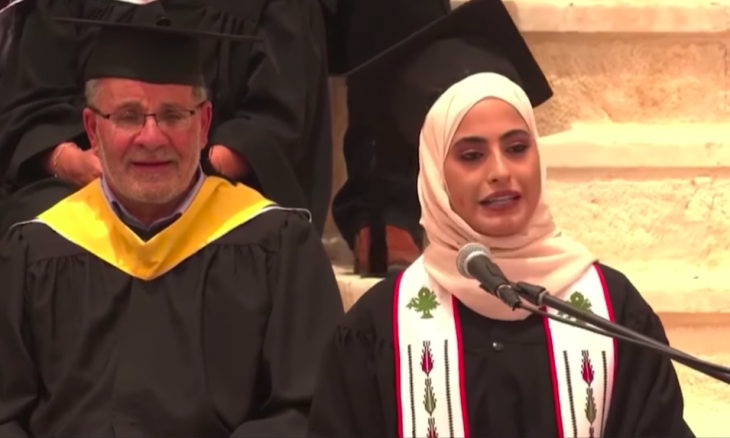 المقدسية منى الكرد تحمل حي الشيخ جراح لقاعة التخرج في جامعة بيرزيت- (صور وفيديو)