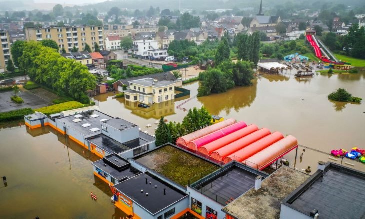 وفي فالكنبورغ القريبة من الحدود البلجيكية والألمانية، اجتاحت مياه الفيضانات وسط البلدة مما أدى إلى إخلاء العديد من دور رعاية المسنين وتسبب في تدمير جسر واحد على الأقل.