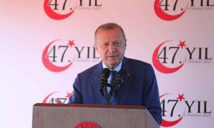 خلال زيارته الثلاثاء، أعلن أردوغان تأييده لحل الدولتين في قبرص بين حكومة القبارصة اليونانيين المعترف بها دوليا في الجنوب، والشطر الشمالي، وذلك في تباين ملحوظ عن الجهود الدولية المبذولة لإعادة توحيد الجزيرة في فدرالية تضم المجموعتين.