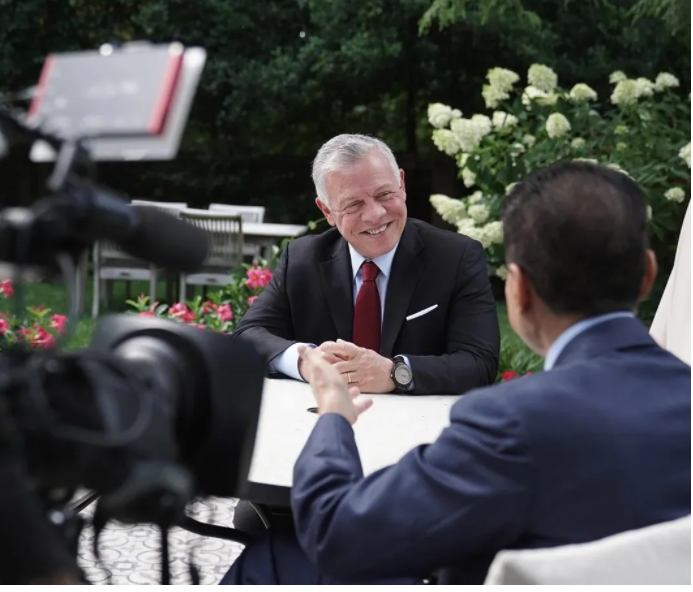 الملك عبدالله الثاني: مجددا، هذا النوع من الخطاب ليس بجديد. ولهؤلاء الأشخاص أجندات يريدون تنفيذها على حساب الآخرين. الأردن هو الأردن. لدينا مجتمع مختلط من خلفيات عرقية ودينية مختلفة، وقد أخالفك في صحة النسب التي ذكرتها، لكن هذا بلدنا. الفلسطينيون لا يريدون أن يكونوا في الأردن. إنهم يريدون أراضيهم، ورايتهم ليرفعوها فوق بيوتهم، ومنتخبهم الوطني لكرة القدم.