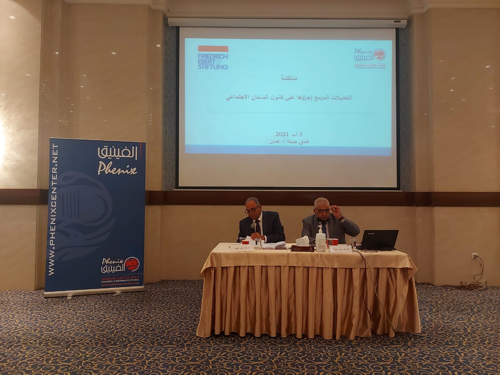 جاء ذلك في جلسة نظمها المرصد العمالي الأردني التابع لمركز الفينيق للدراسات الاقتصادية، بالتعاون مع مؤسسة فريدرتش ايبرت الألمانية، حول التعديلات المزمع إجراؤها على قانون الضمان الاجتماعي.