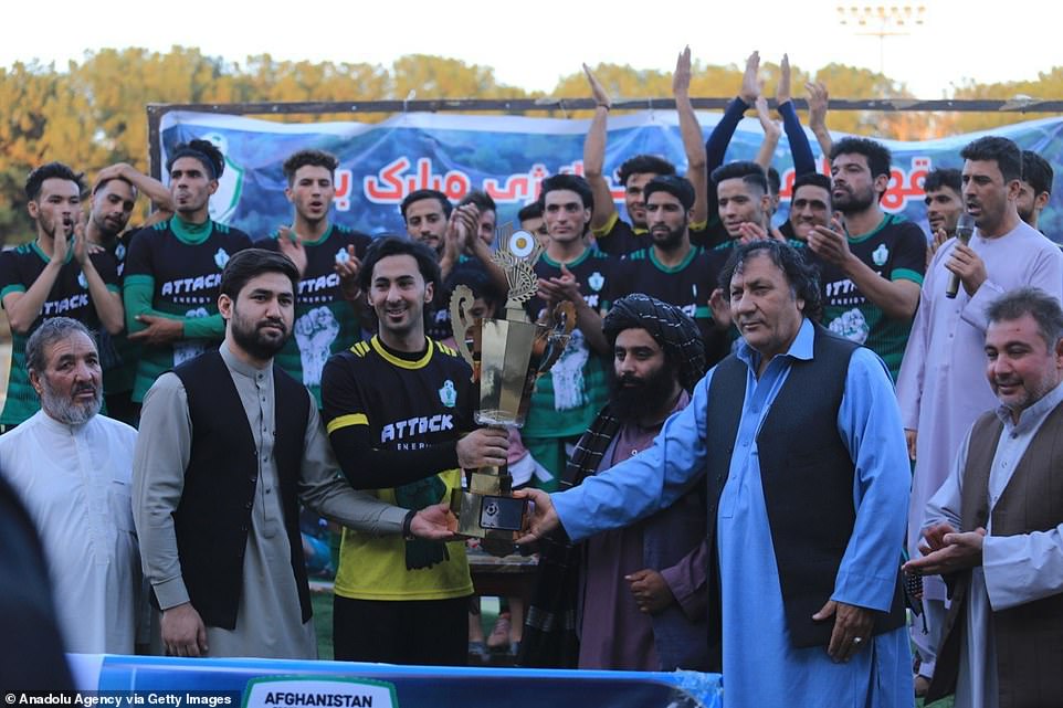 وهج نيوز : قالت صحيفة “ديلي ميل” البريطانية إن مسلحين من حركة طالبان حضروا مباراة نهائي دوري كرة القدم في مدينة هرات بأفغانستان ثم قدموا كأس البطولة للفريق الفائز بالمباراة في إطار حملة علاقات عامة لتحسين صورتها.