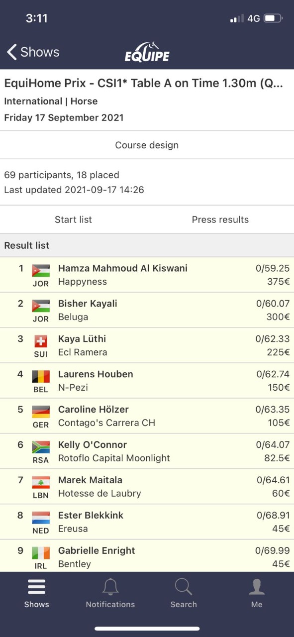 الكسواني في المركز الاول لبطولة هولندا الدولية للفروسية
