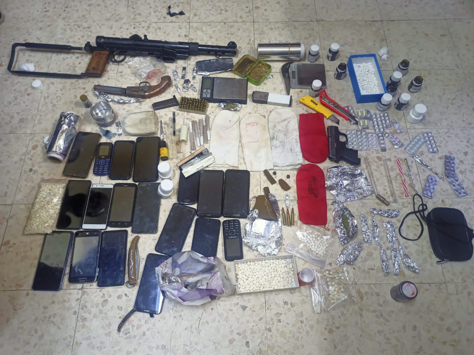 وتابع الناطق الاعلامي انه ضُبط بحوزتهم سلاحان ناريان احدهما اوتوماتيكي وكميات متفرقة من المواد المخدرة المُعدة للترويج وبوشر التحقيق معهم.